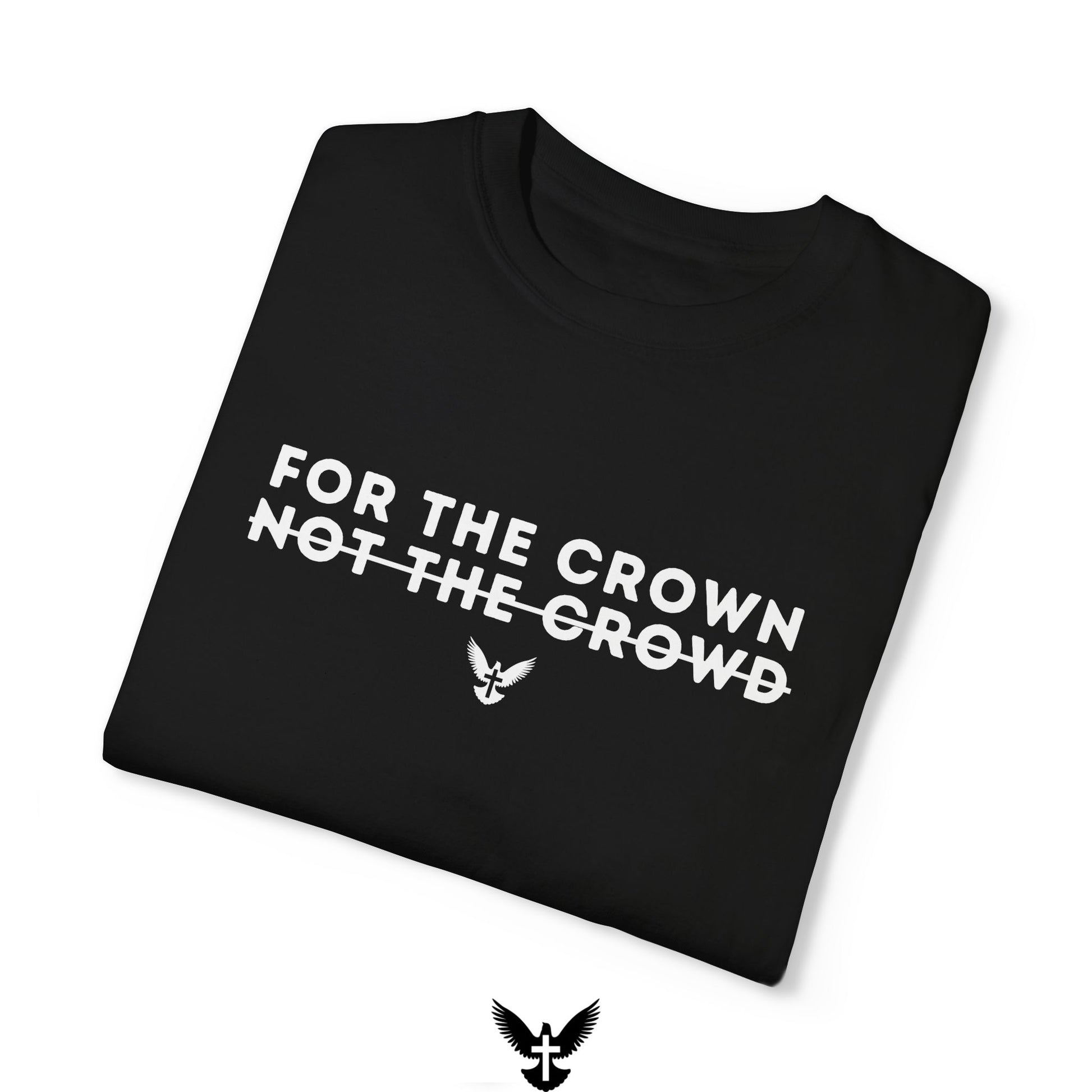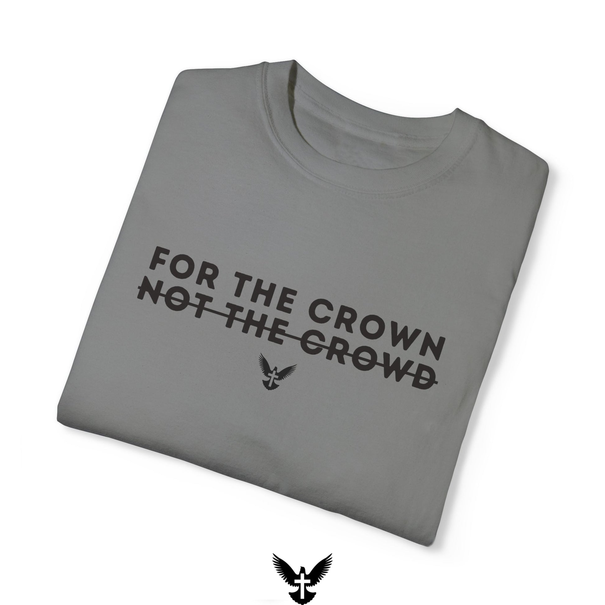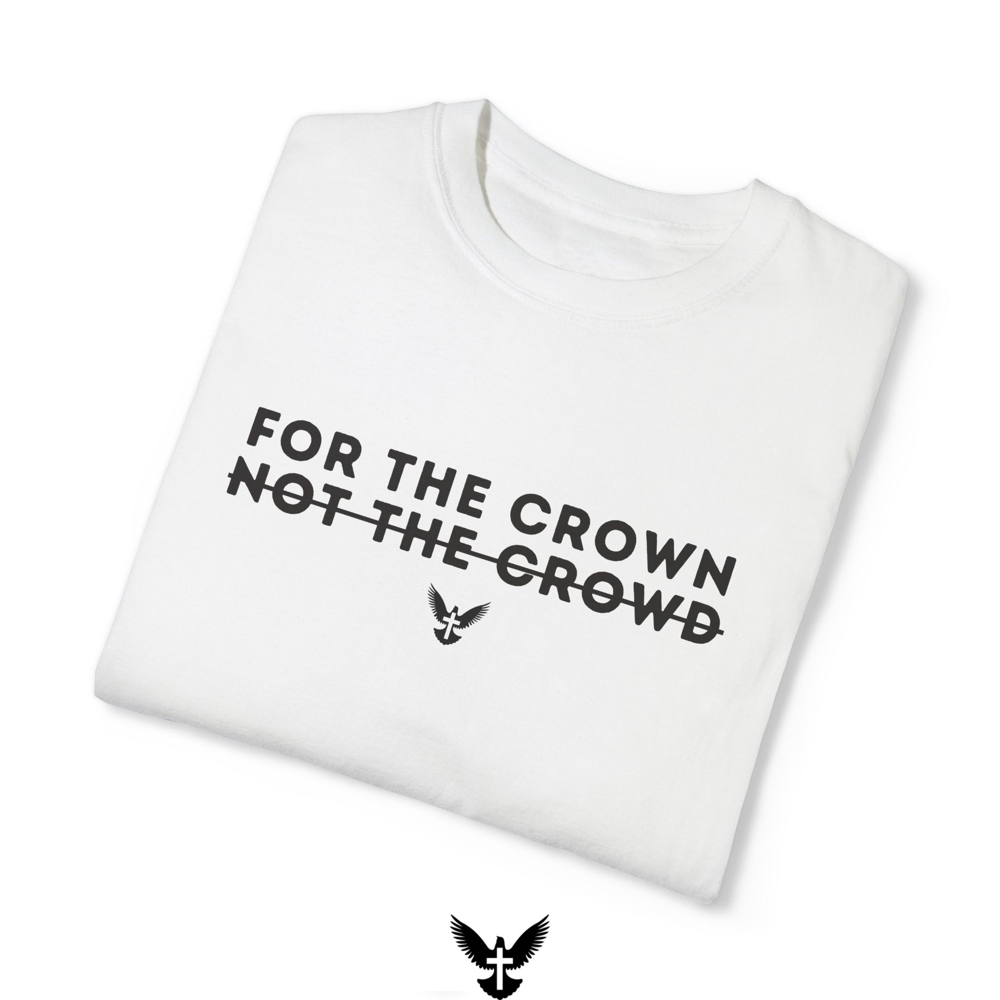 Step out in faith and confidence with our "For the Crown, Not the Crowd" tee. A bold reminder to live for eternal rewards, not worldly applause.