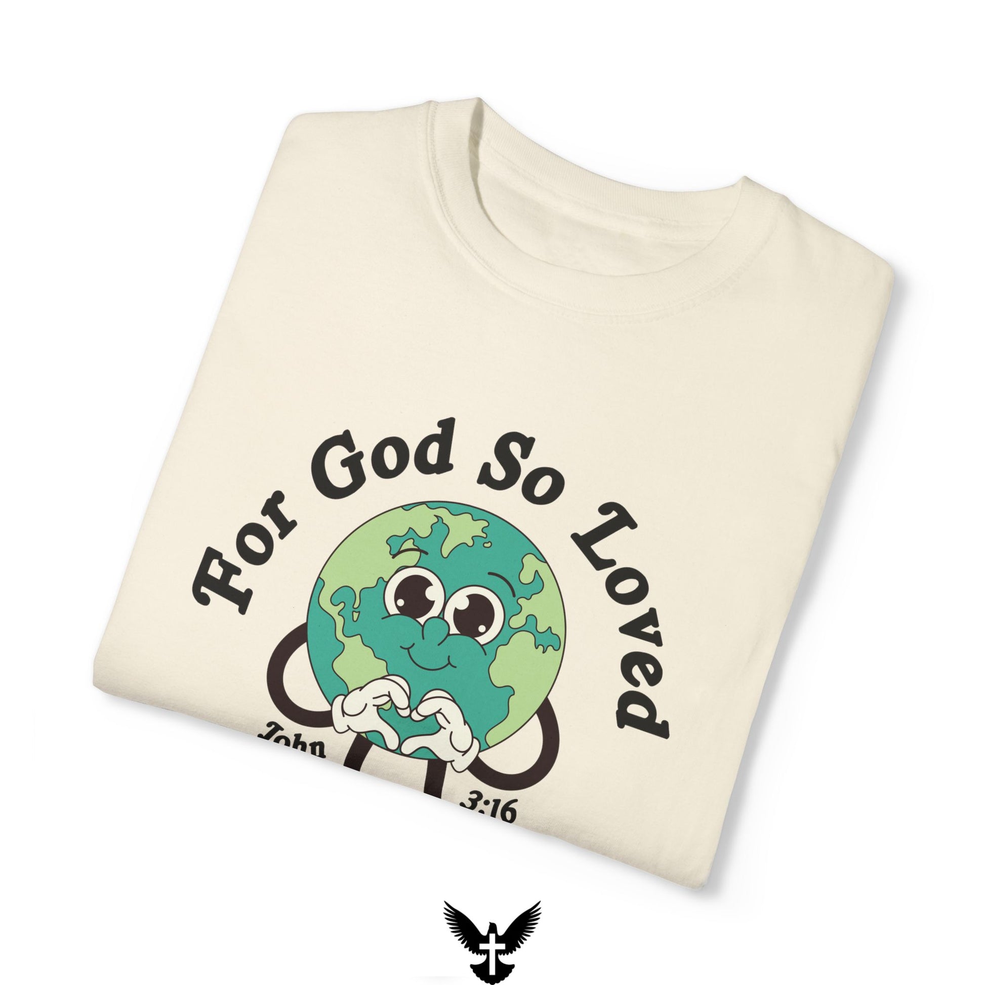 Introducing our new "God So Loved the World" t-shirt, inspired by John 3:16. This shirt is a bold reminder of God’s endless love and grace, crafted with premium quality materials for everyday wear. The timeless message on the front—“God So Loved the World”—serves as a powerful testament to your faith, allowing you to share this hope with everyone you meet. Comfortable, stylish, and deeply meaningful, this t-shirt is perfect for anyone wanting to express their belief and encourage others!