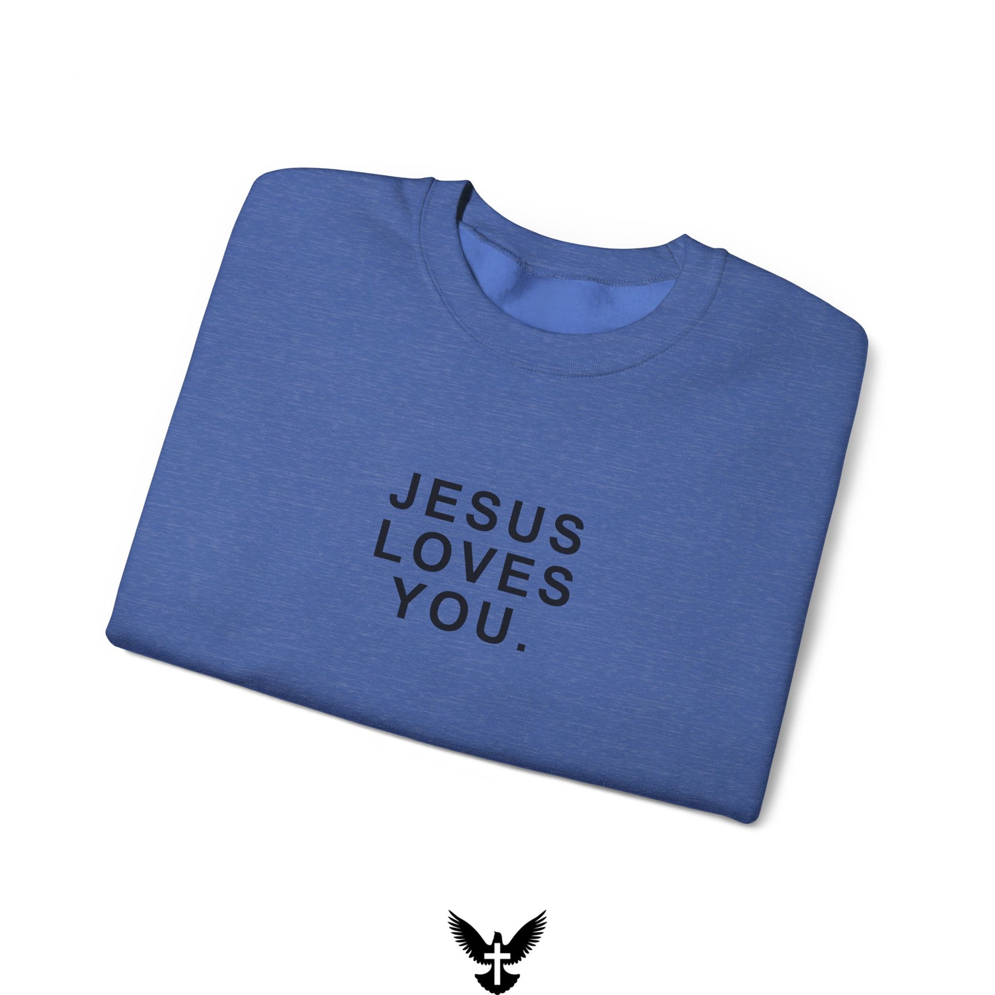 Spread love and faith with our "Jesus Loves You" crewneck. This timeless design is a simple yet powerful reminder of Christ's unconditional love. Cozy, stylish, and perfect for sharing the good news wherever you go.