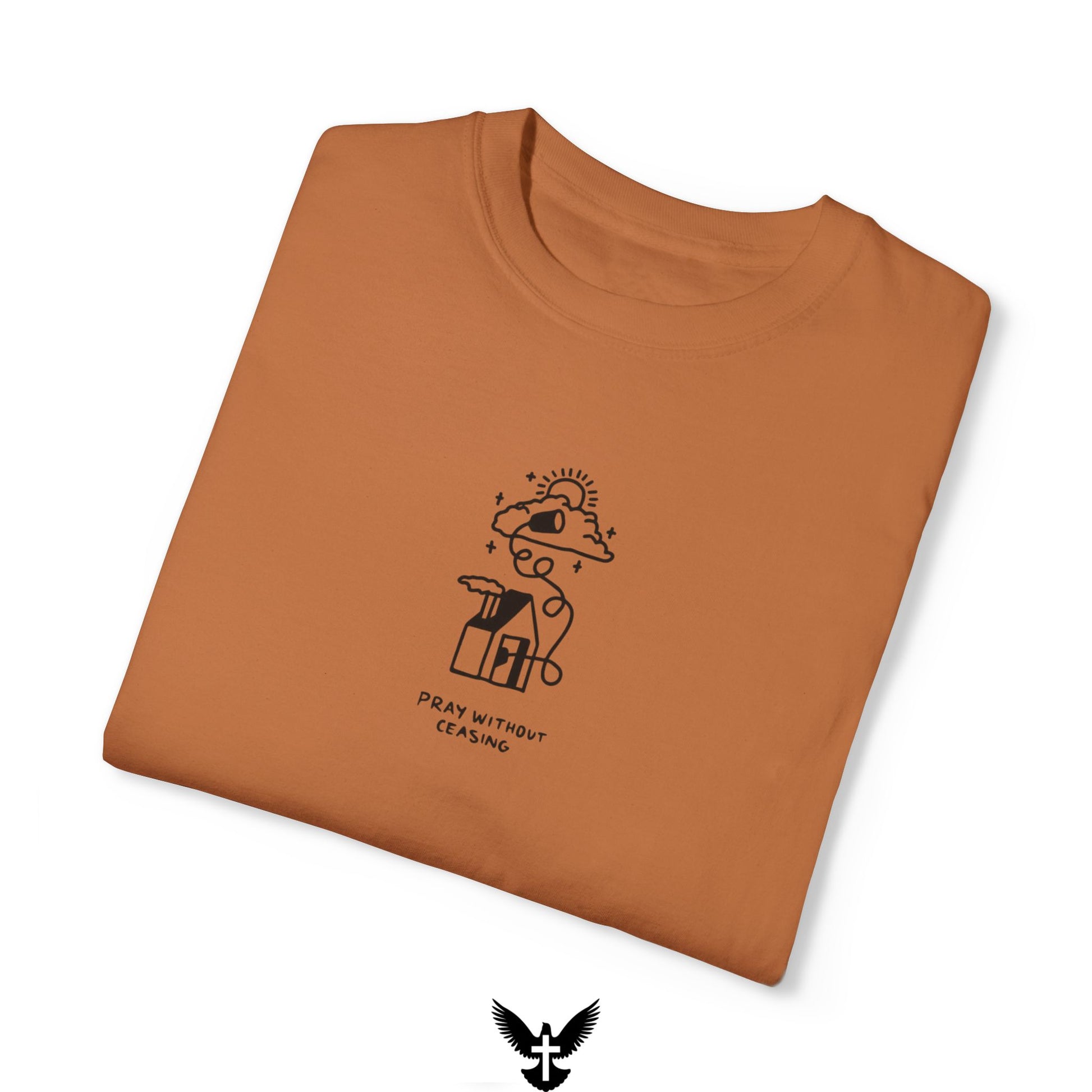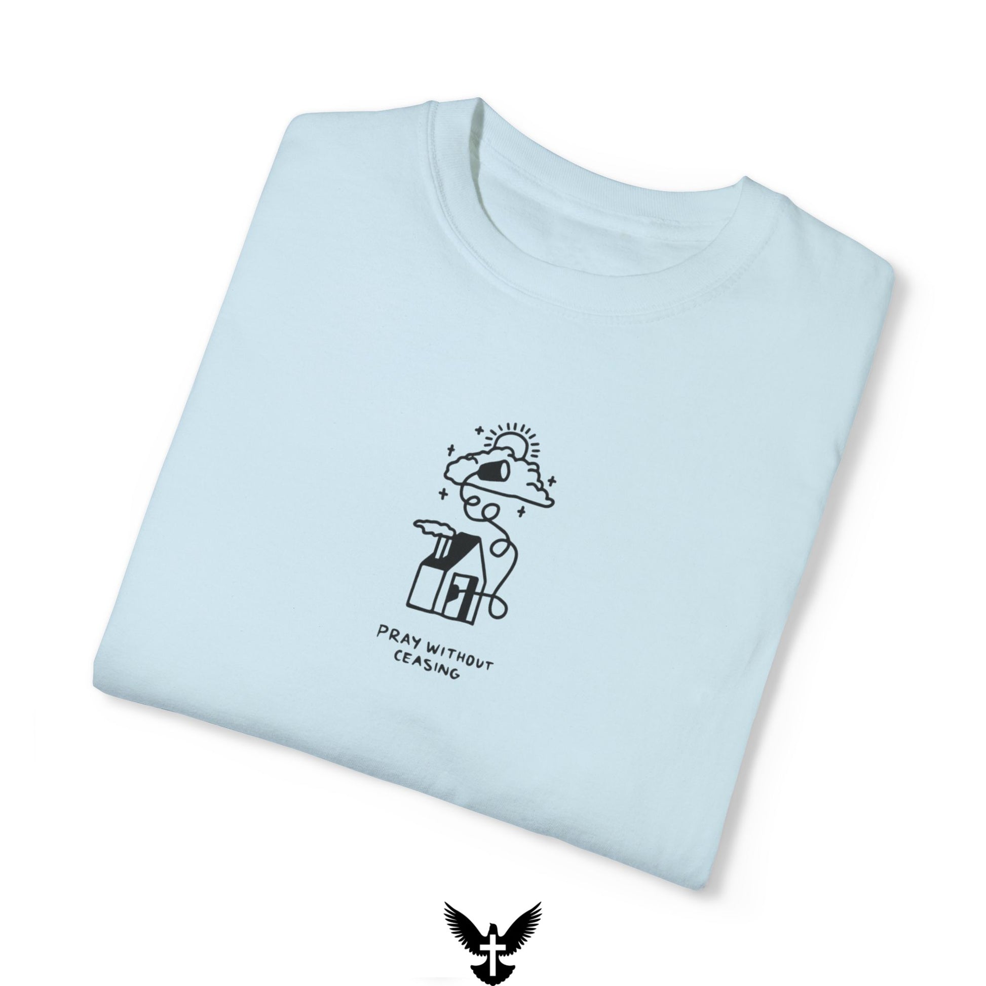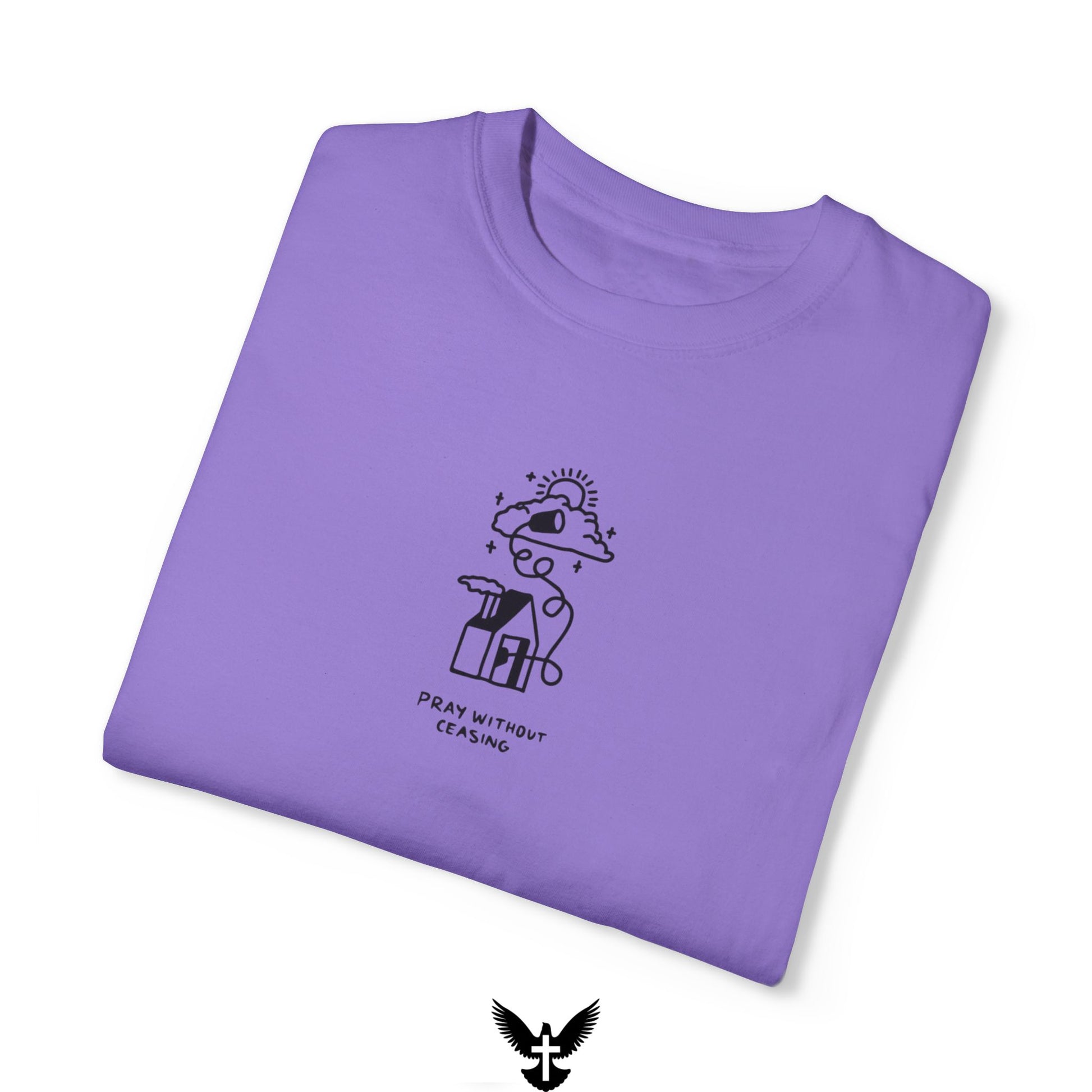 Inspired by 1 Thessalonians 5:17, this Pray Without Ceasing tee is a daily reminder to stay connected to God in all moments. Featuring a simple yet powerful design of a home with prayers rising to the heavens, this shirt encourages a life centered on faith and communication with the Lord.