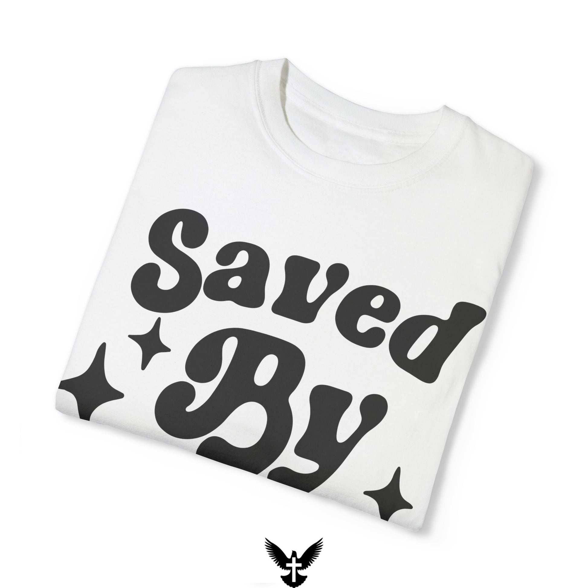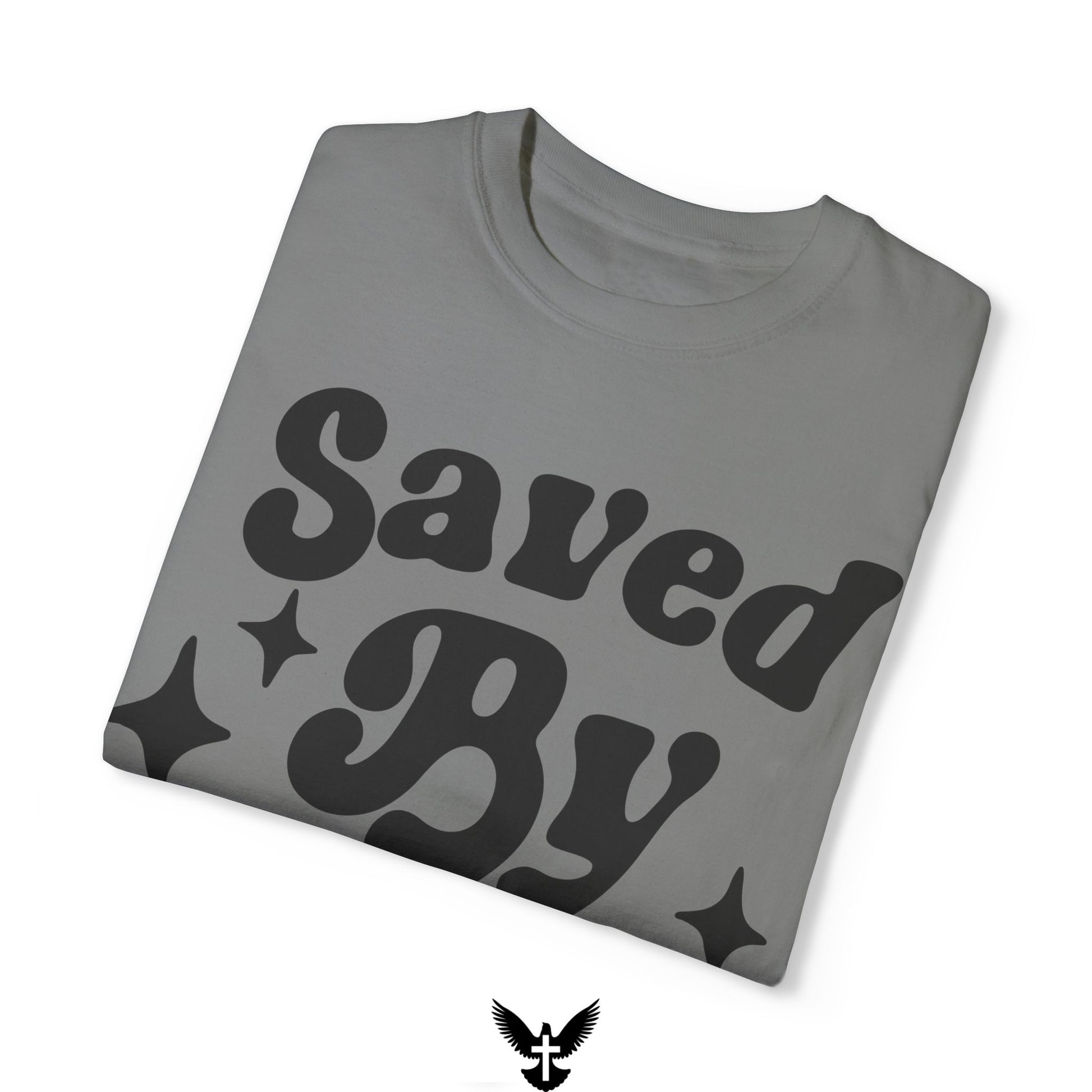 This unisex garment-dyed T-shirt with the design 'Saved by grace' exudes a sense of gratitude and faith. Perfect for those looking for a comfortable and stylish tee to express their beliefs. Ideal for religious holidays, church gatherings, or everyday wear for the spiritually inclined.
