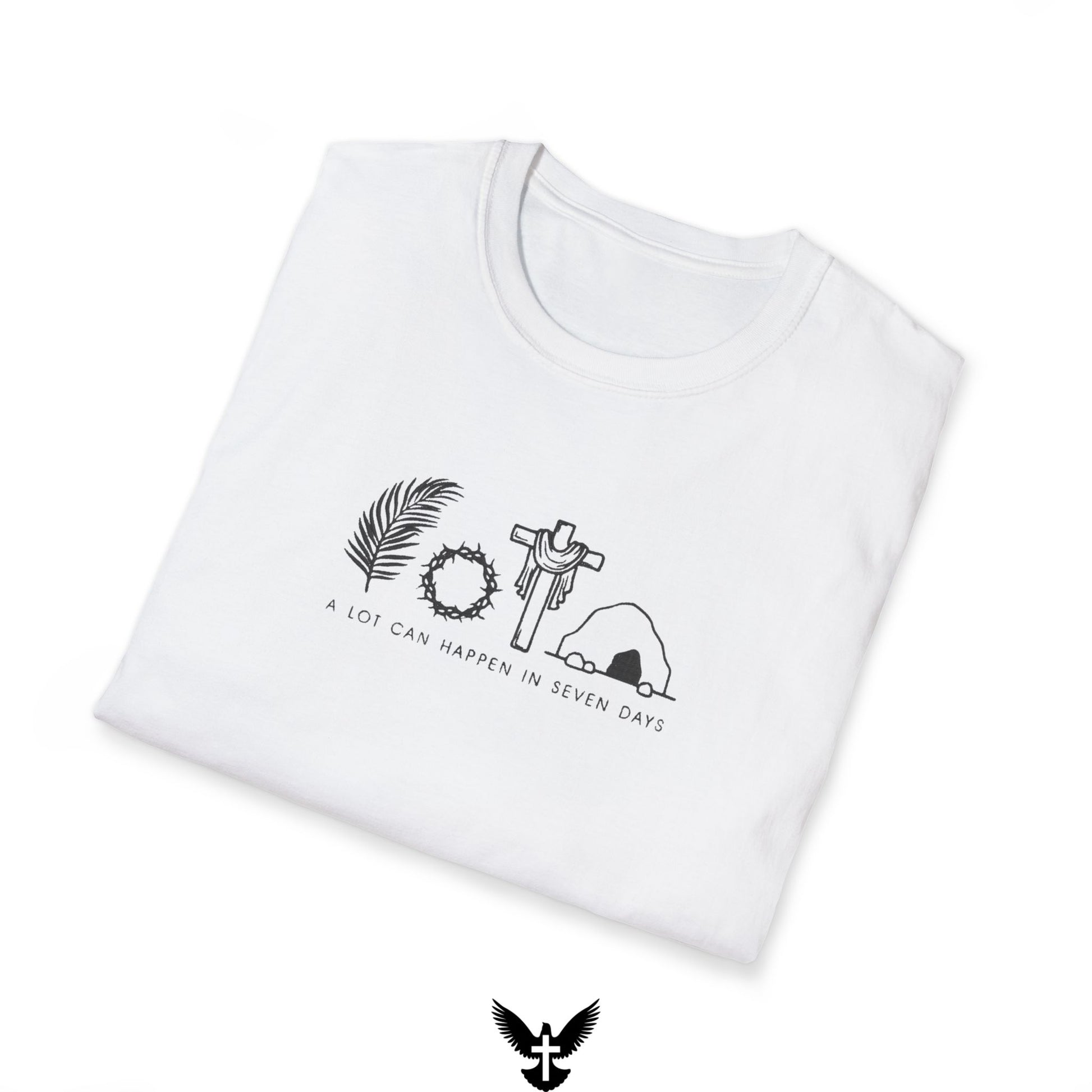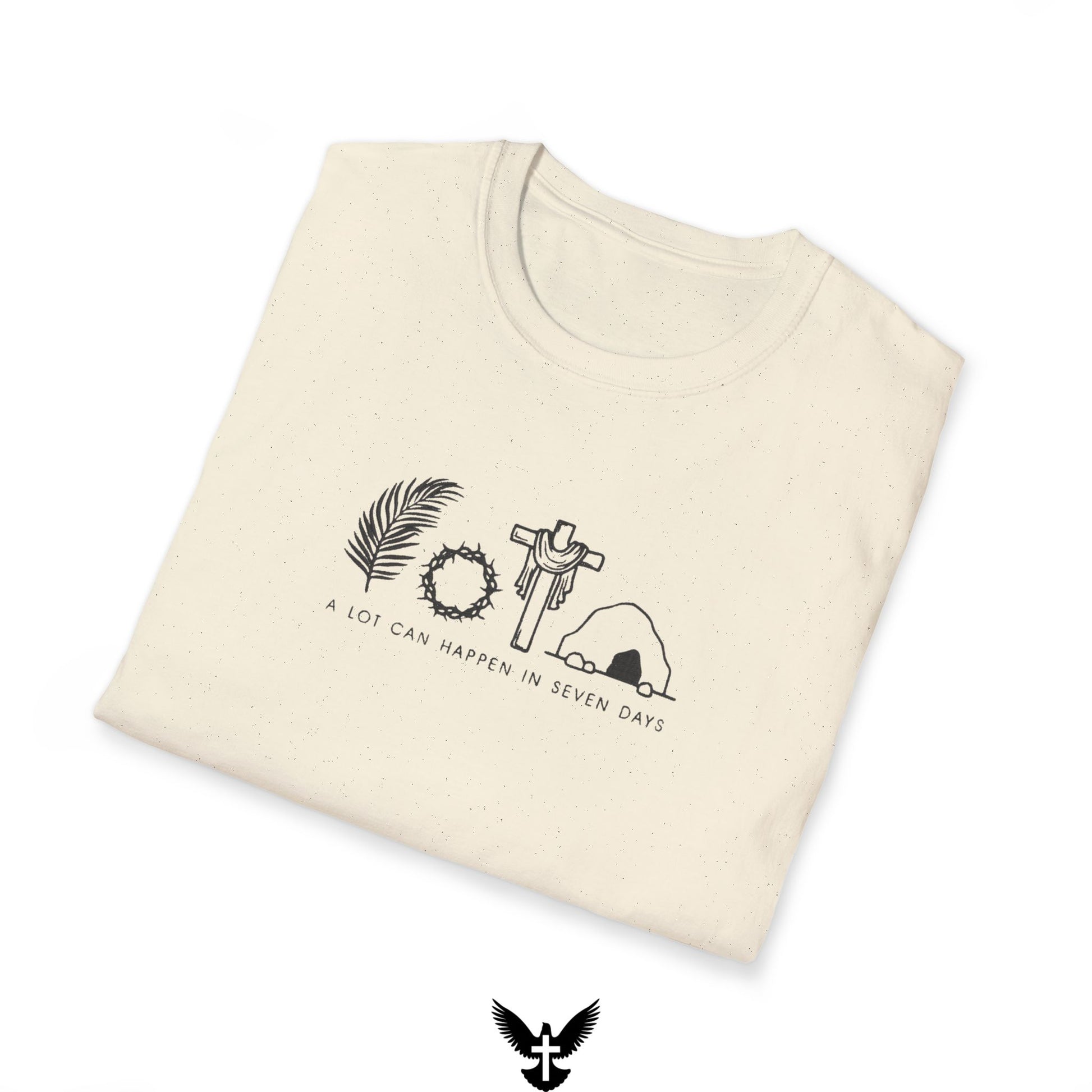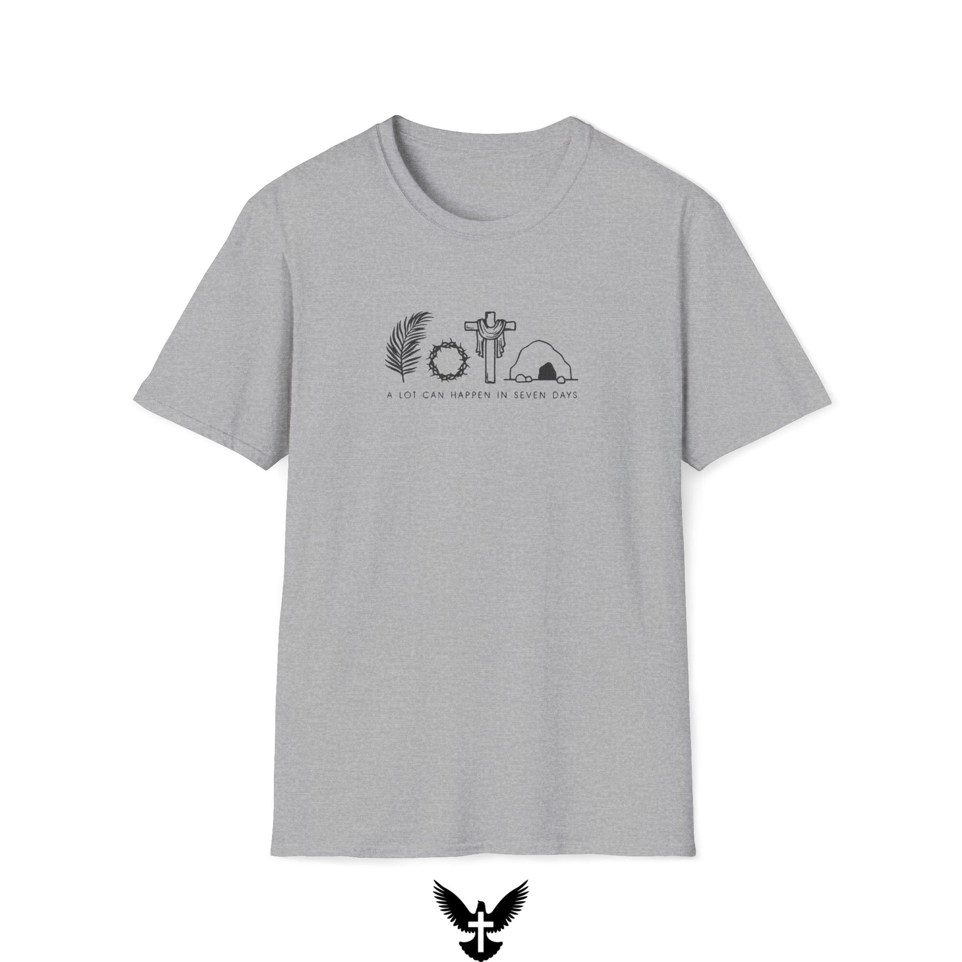 In just seven days, everything changed. From the cross to the empty tomb, Jesus’ sacrifice and victory over death remind us of the greatest story ever told. This powerful shirt is a bold statement of faith, hope, and redemption—because a lot can happen in seven days.
