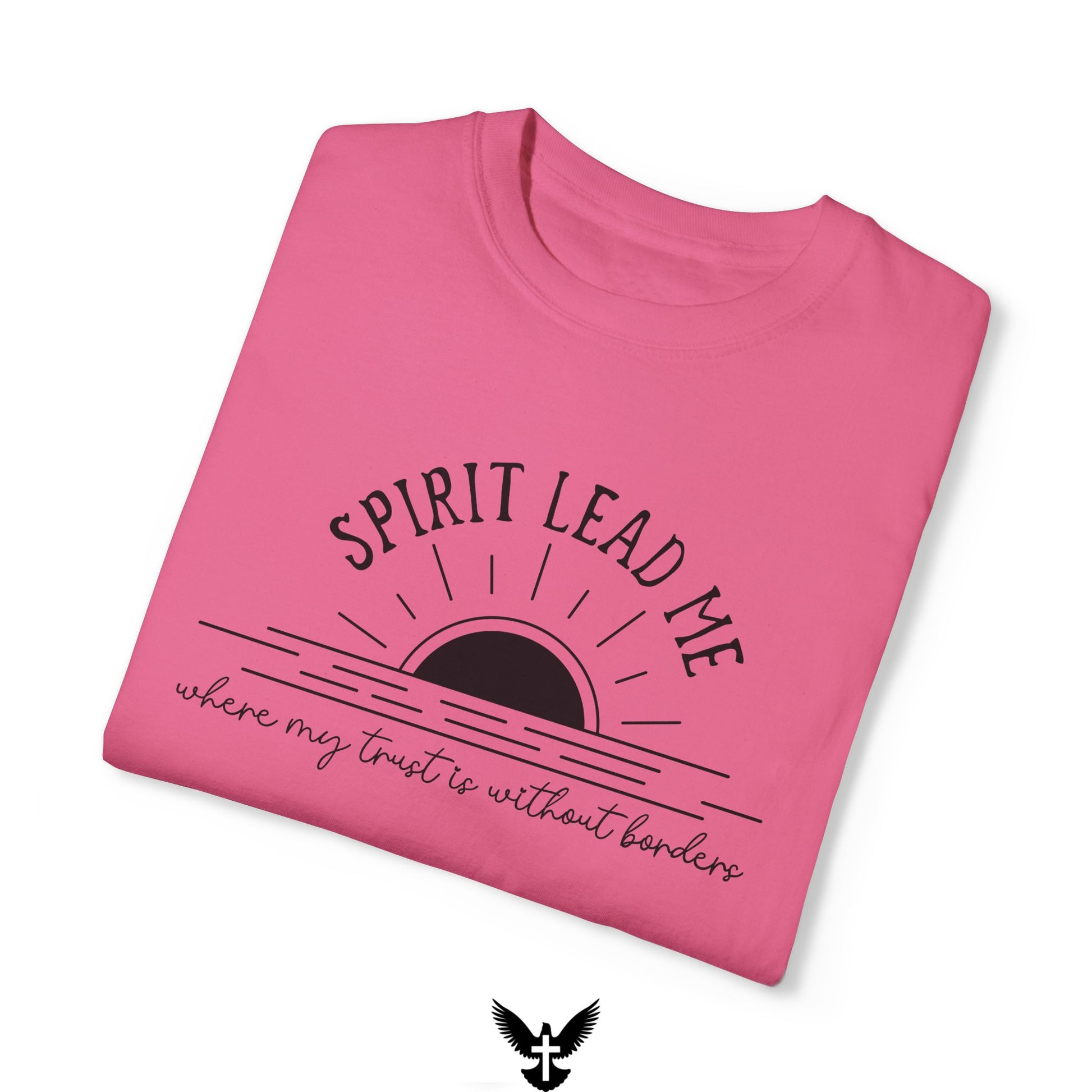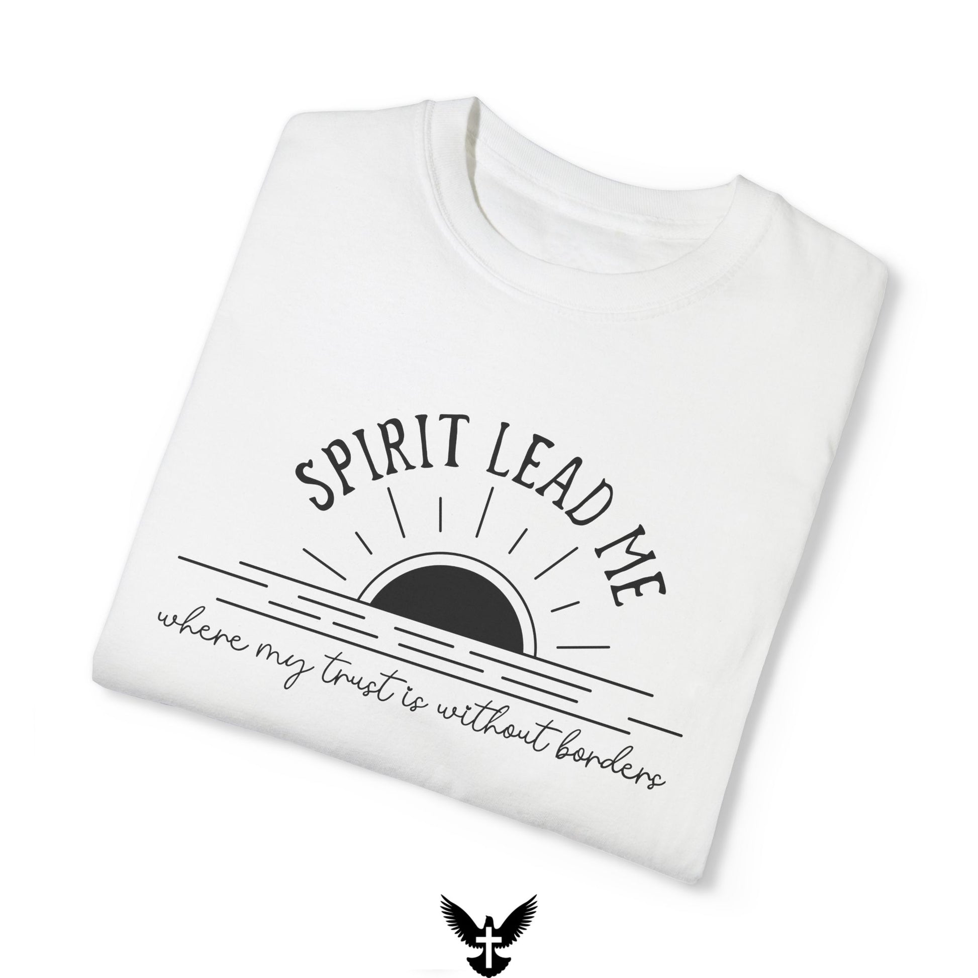 Embrace your faith with our inspiring "Spirit Lead Me" t-shirt. Featuring the empowering phrase "Spirit lead me where my trust is without borders," this t-shirt is a reminder of the limitless strength and guidance that comes from spiritual trust.