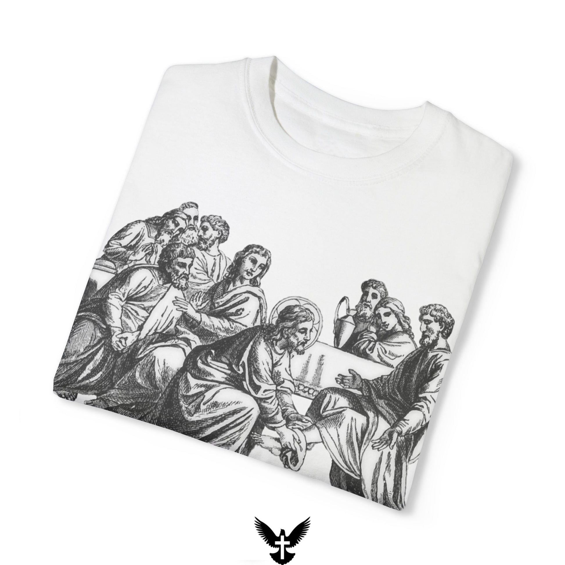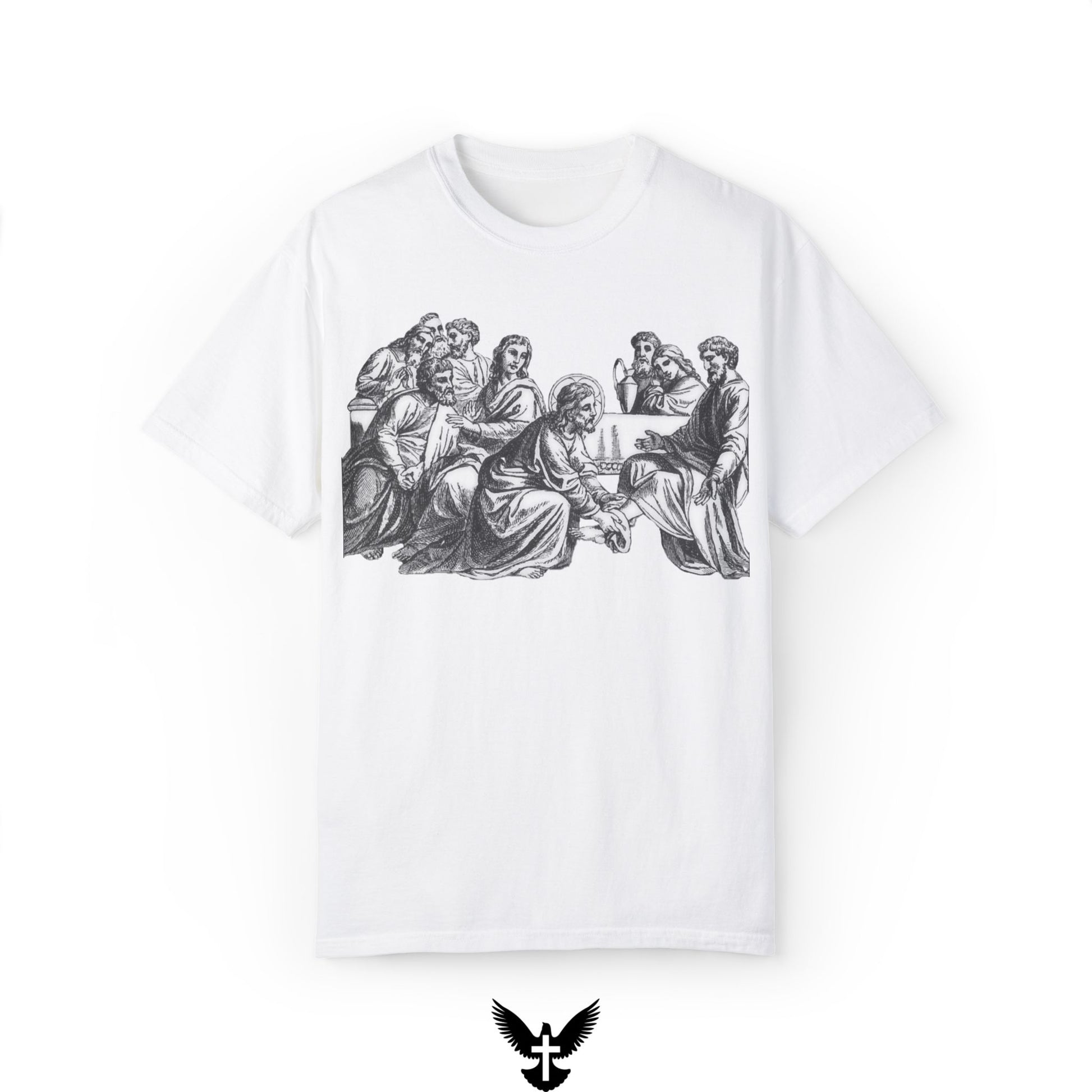 Embrace the spirit of humility and service with our "Washing of the Feet" t-shirt. This powerful design captures one of the most profound acts of love and servitude from the Bible, reminding us to lead by example and serve others with compassion and grace. Ideal for those who wish to reflect their faith through everyday actions and inspire others to do the same.